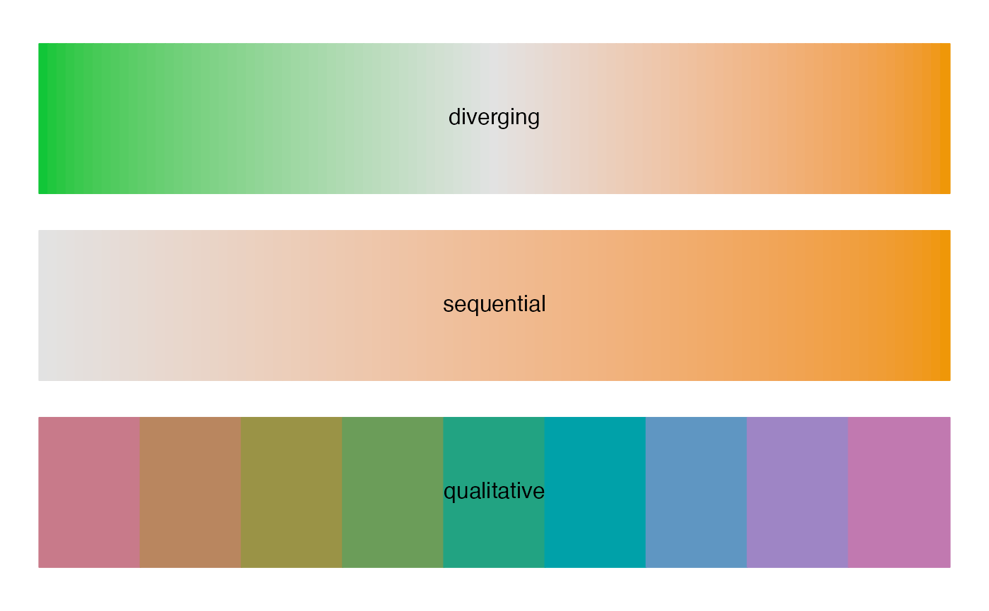 Sequential palettes are produced as the higher half of the diverging palette for consistency.